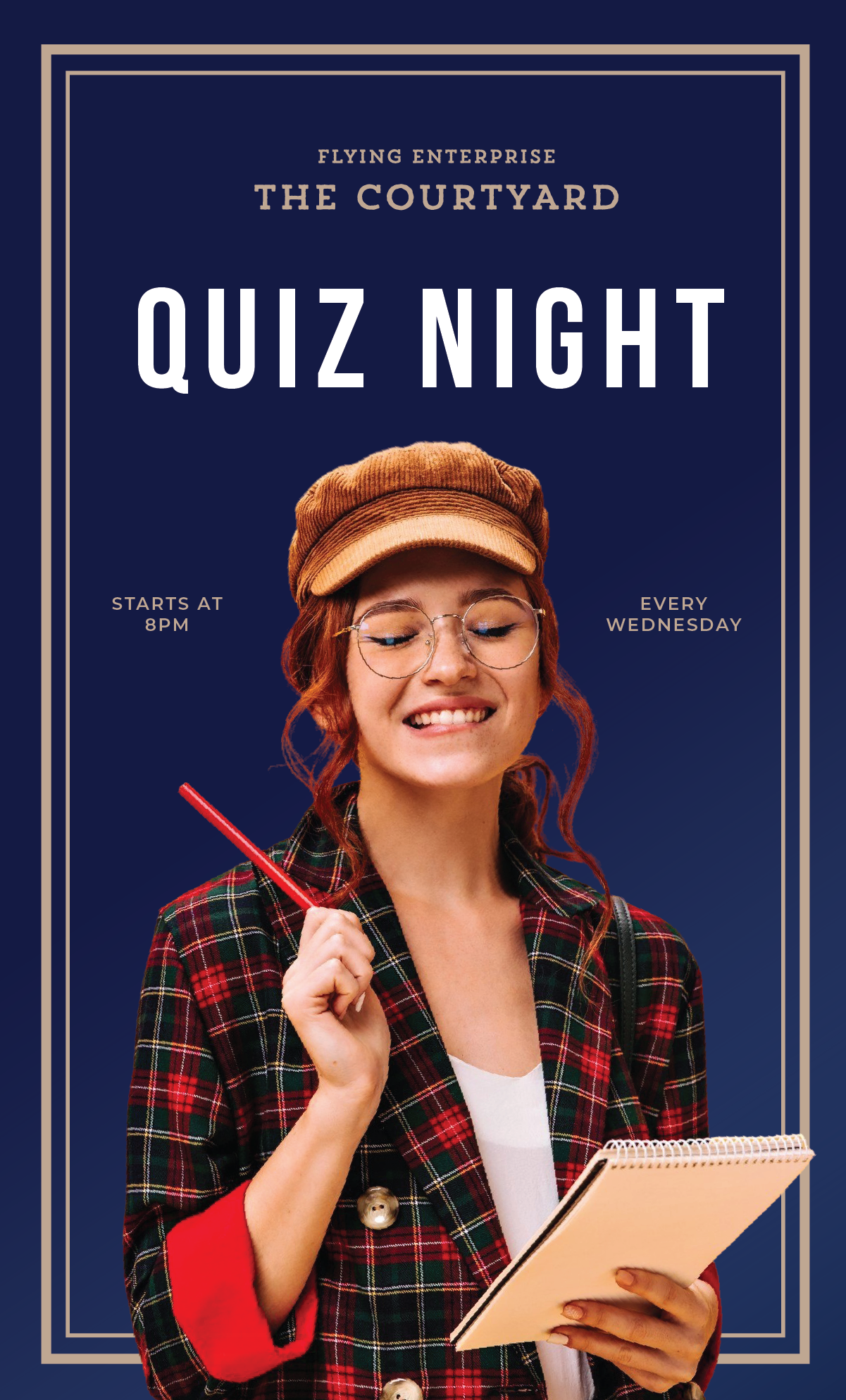 Join us every Wednesday Night at The Courtyard for our weekly Quiz Night great craic, cold pints & prizes up for grabs.